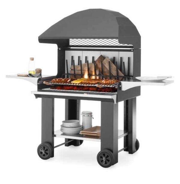 Un grătar portabil pe lemne si cărbuni, ușor de plasat în orice loc preferați datorită roților. Structura este din oțel vopsit pentru exterior și rezistă la temperaturi ridicate, deci se poate folosi inclusiv iarna.