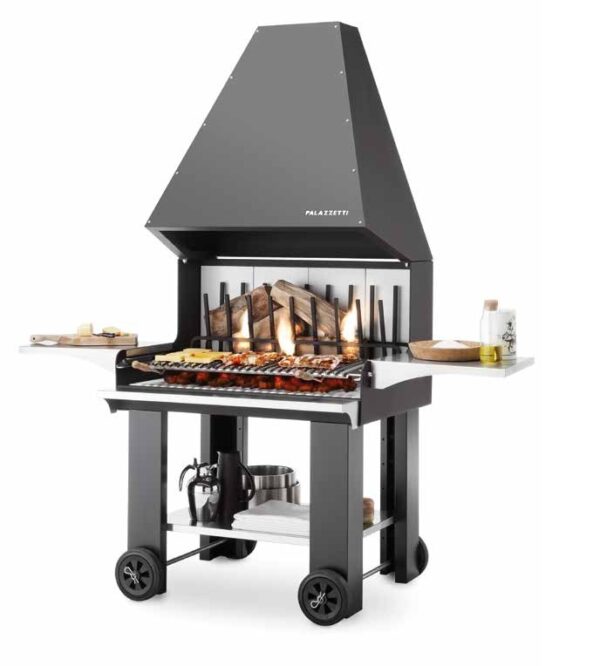 Plăcerea de a găti cu lemne, practicitatea unui grătar cu roți! Plasați-l oriunde doriți în timpul gătitului și depozitați-l în siguranță în garaj sau dulap în timpul sezonului de iarnă. Zona de gătit este deosebit de mare și vă permite să pregătiți cantități mari în același timp.