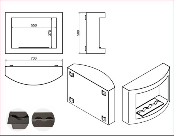 Designul biosemineului este realizat din tabla de otel cu grosimea de 1,5 mm si vopsita cu pulbere in negru NON 000 semi-mat.