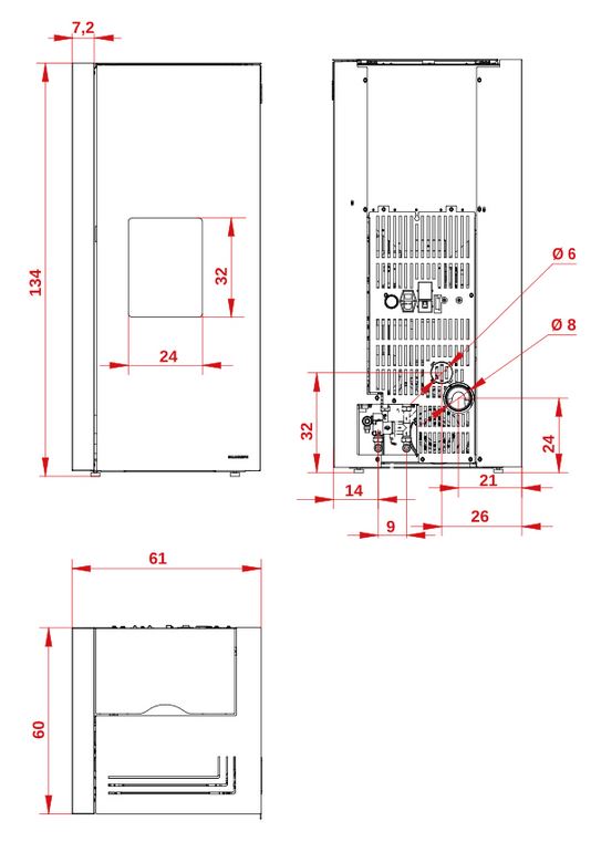 - Autonomie mare datorită rezervorului de 45 kg (3 saci de peleți).