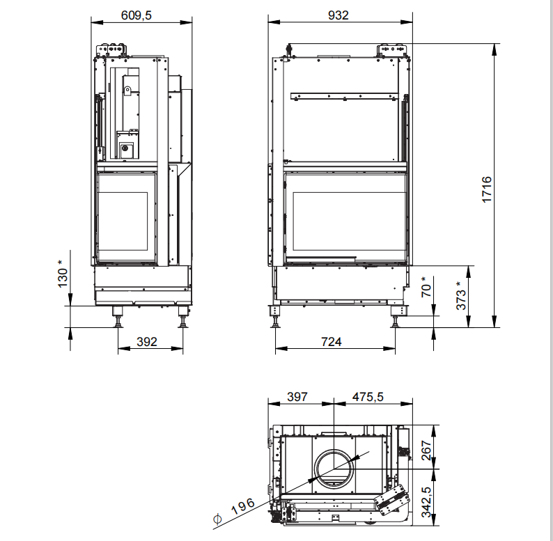 V EPLUS: La fel ca versiunea ventilată exceptând tehnologia ET4W pentru controlul combustiei al ventilației și a ușii motorizate.