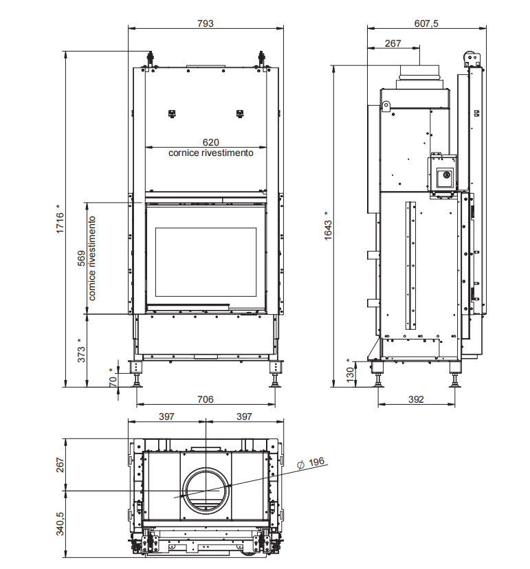 • Suport estetic din fontă pentru lemnele de foc disponibil standard.