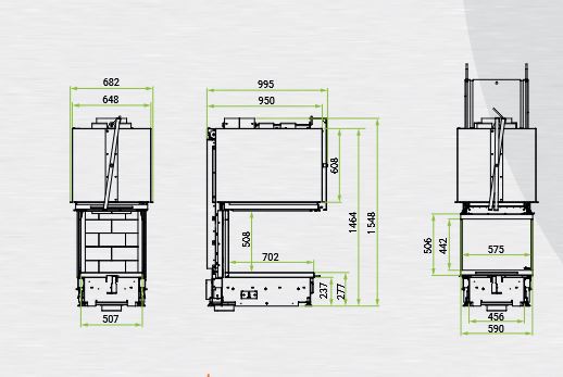 • Înălțimea vizualizării focului – deschis/închis: 508 / 422 mm
