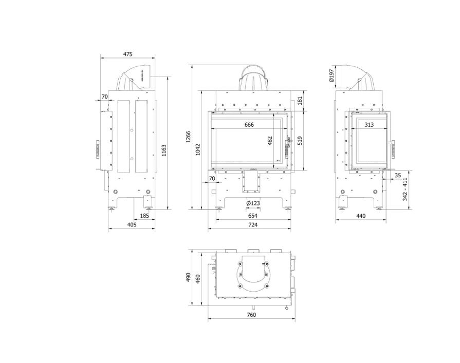 Focar de calitate cu deschidere ampla, tavita pentru cenusa mare, fabricat din otel pe exterior si captusit cu samota neagra pe interior pentru o ardere eficienta. Acesta ofera o ardere curata si eficienta, fiind perfect pentru orice tip de locuinta.