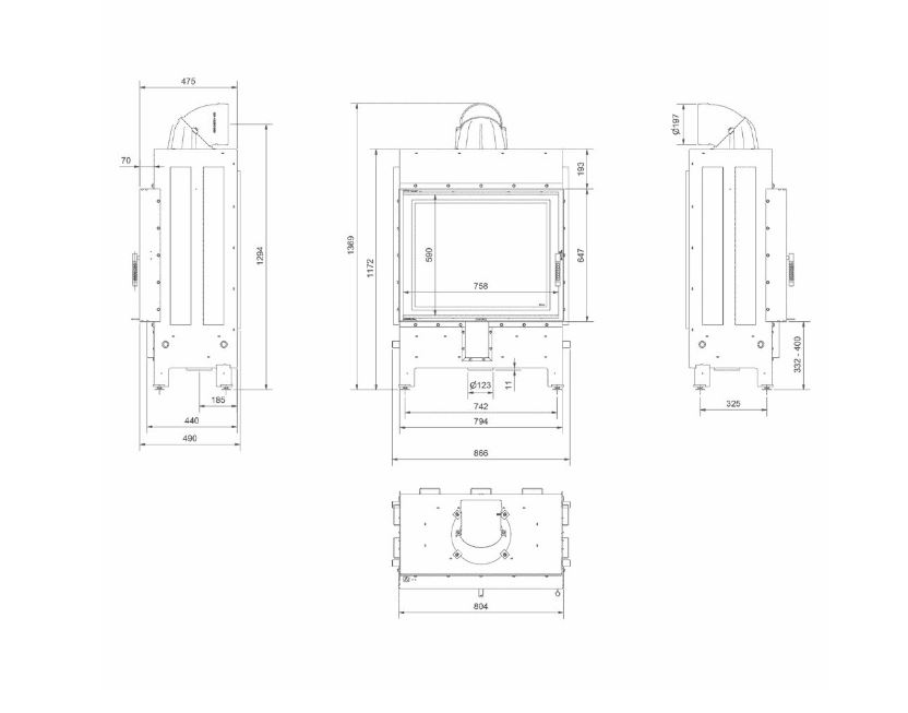 Material:Otel refractar de inalta calitate cu o compozitie ridicata de carbon pentru o rezistenta ridicata la temperaturi inalte , Captusit la interior cu samota, cu densitate mare, si rezistenta termica de pana la 1000grC. Rezistenta mecanica mare, datorita procesului de uscare urmat de cel de ardere , Sticla decorativa grafitata (contur negru) care ofera un aspect modern si elegant.