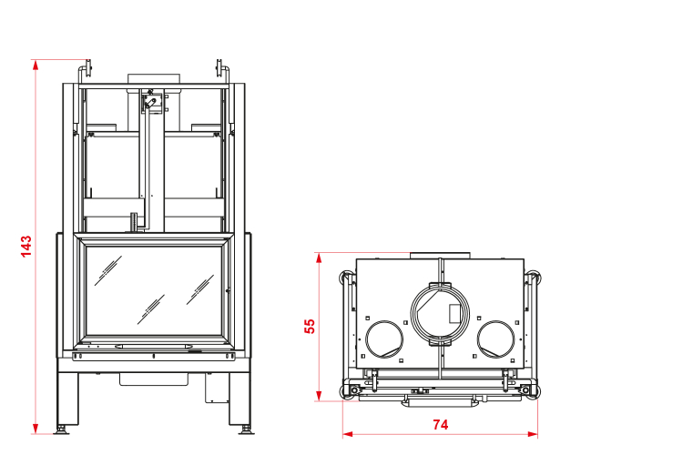 Ușă pyroceram cu ramă de formă pătrată, cu design minimalist pentru o vedere mai ampla asupra focului, cu un mâner ergonomic. Dispune de sistem culisabil și silențios de deschidere, precum și de sistemul patentat VDF pentru asigurarea unui tiraj bun și o reducere constantă a consumului de lemne. Dotat cu o cameră de ardere, canale de aerisire reglabile cu accesorii necesare și tubulatură flexibilă.