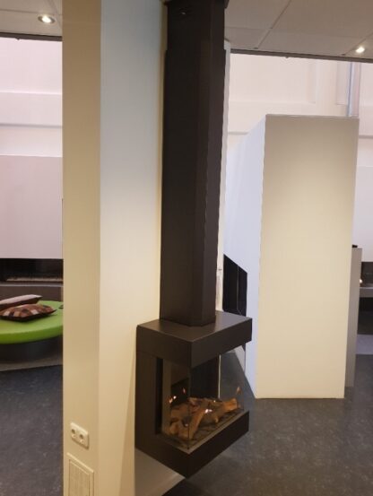 DIABLO NEXT este un focar clasic, cu 3 fete, suspendabil. Acesta poate fi montat direct pe un perete fara a mai fi nevoie de un finisaj de semineu. Acest lucru presupune o instalare usoara si mai putin spatiu ocupat. Cosul de fum din partea de sus poate fi ascuns in spatele unui capac de evacuare.