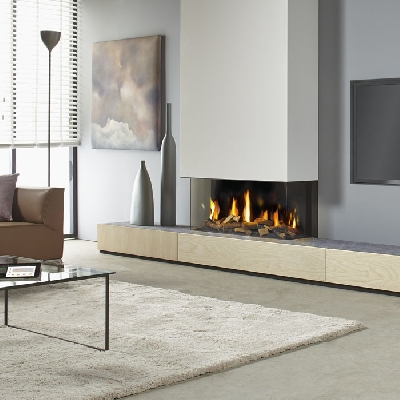 Vă puteți bucura de confortul unui foc de gaz cu mirajul unui foc de lemn real.