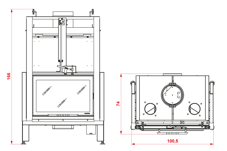 - Focar cu bază din fontă și panouri laterale în Magnofix® (amestec ignifug special care optimizează arderea și radiația de căldură);