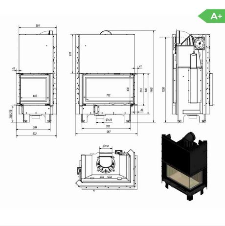Randament crescut datorita incintei captusite cu samota, a sistemul avansat de recuperare a caldurii in partea superioara a focarului si tripla combustie cu admisie de aer din exterior.