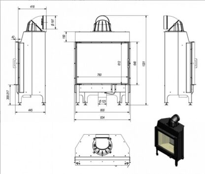 Focarul Kratki N130 Samota neagra este echipat cu racord pentru admisie a aerului din exterior de fi 125mm.