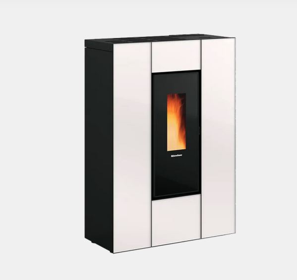 Marilena Plus, soba pe peleți cu un design slim, minimalist și elegant, are o adâncime de doar 35 cm, integrându-se perfect în orice încăpere.