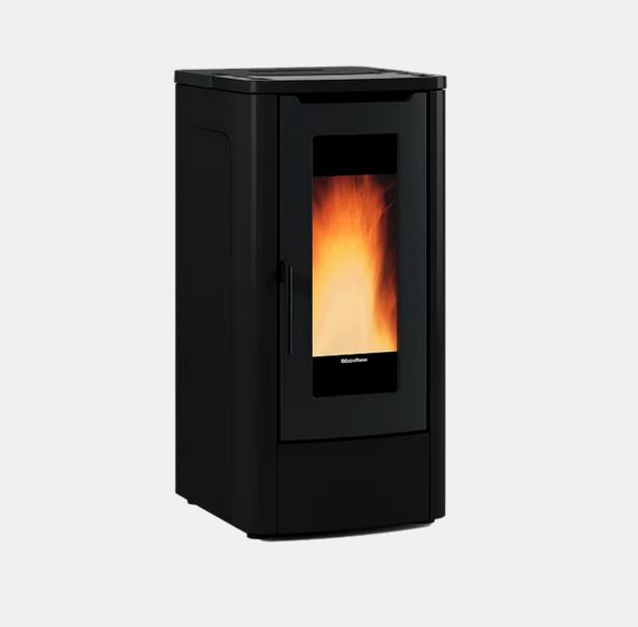 Model versatil din punct de vedere al instalării, cu opțiune de evacuare a fumului fie în partea superioară, fie în partea posterioară. Designul modern, completat de finisaje elegante din oțel și ceramică (bordeaux, ivoire, negru) îl face ideal pentru orice tip de interior. Dispune de un rezervor generos de 27 kg, compartiment de cenușă ușor de gestionat și sistem dublu de canalizare cu două motoare dedicate pe o distanță de până la 8 metri, cu control termostatic și funcție de dezactivare.