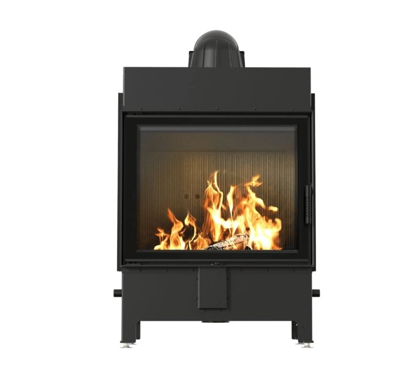 Focar profesional din otel cu interior din samota neagra structurata, sistem cu tripla combustie si evacuare optimizata, ideal pentru incalzire constanta si aspect elegant.