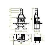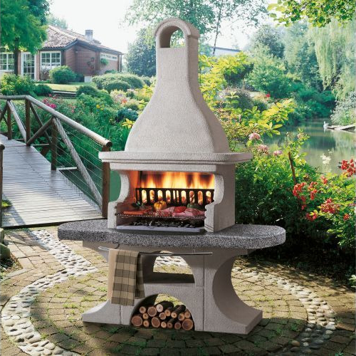 Gratar Newport 2 cu structura metalica interior hota, vatra consolidata cu perete dublu, placi refractare, blat din Marmotech si granit gri, gratar standard 76x40cm, suport lemne, suport cromat ustensile, tratament hidrofug blat.