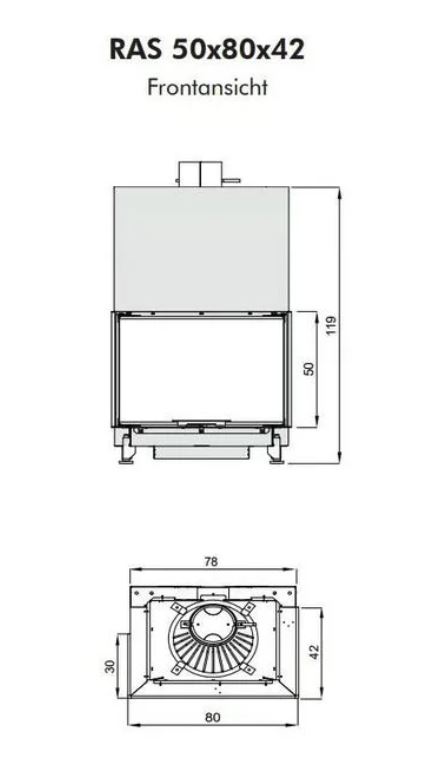Care instalator de șeminee nu este familiarizat cu această situație: o inserție de șemineu trebuie să fie atașată la un coș de fum intern. Un șemineu cu două fețe este cu partea închisă peste coșul de fum și un șemineu cu trei fețe trebuie planificat cu o distanță până la coșul de fum, astfel încât ferestrele laterale să poată fi deschise cu ușurință pentru curățare. Rüegg RAS rezolvă această situație elegant cu fereastra laterală scurtată cu o singură față.