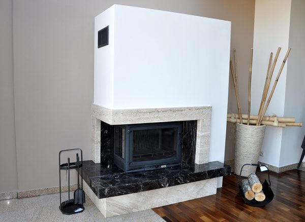 Semineu modern realizat din marmura/ granit la alegerea clientului. Focarul pentru care s-a optat este cu doua laturi din fonta de inalta calitate si un aspect deosebit. Asigura un confort sporit fie prin incalzirea spatiului, fie prin aspectul lor exterior.
