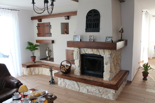 Semineu rustic, clientul a optat pentru constructie semineului din piatra să fie de cea mai bună calitate, durabil și de calitate. Focar cu geam drept si cu deschidere simpla, blat din lemn si peninsula in partea stanga, toate acestea elemente adaugat o nota de rafinament.