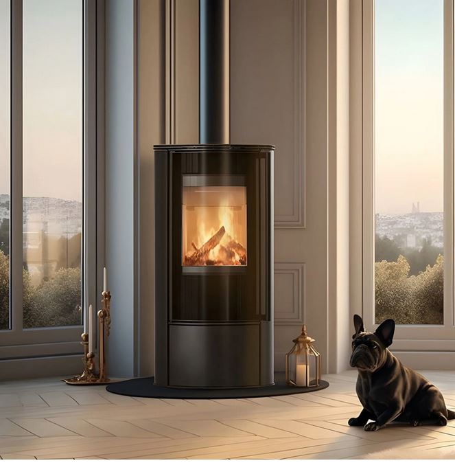 Soba cu design modern, fabricata din otel si captusita cu samota la interior, pentru durabilitate si eficienta termica. Echipata cu sistem de tripla combustie pentru ardere eficienta.