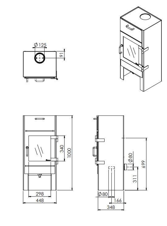 Eficiența sa ridicată de 82% garantează un randament maxim de căldură. Deasupra ferestrei de sticlă veți găsi o ușă detașabilă pentru un spațiu frumos pe care îl puteți folosi ca și cuptor.
