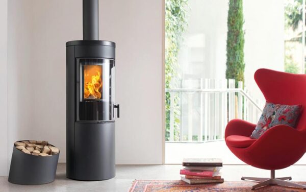 Soba pe lemne cu focar ridicat pentru un design original si deosebit. Placat cu oțel, cu blatul din maiolica, disponibil în Bianco și Nero Opaco. Ușă cu sticlă curbată pentru vedere maximă asupra focului. Disponibil și cu sistemul BCS.