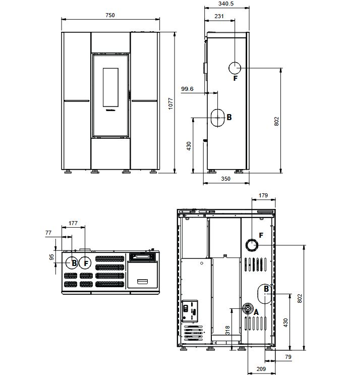 • Usa de alimentare, vatra, suport pentru jar din fonta realizate din fontă, pentru o durabilitate excelentă în timp
